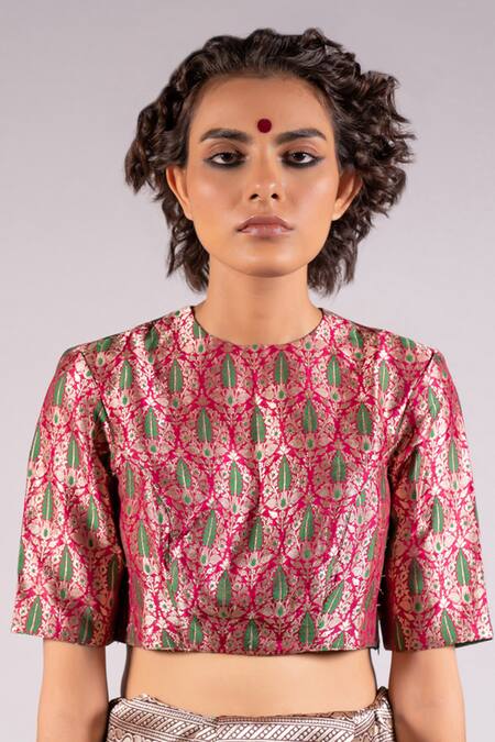Buy_Mimamsaa_Pink Silk Brocade Blouse_Online_at_Aza_Fashions
