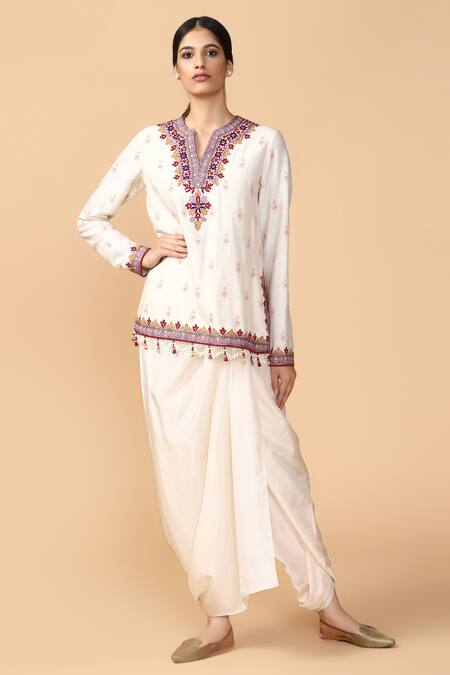 Ivory dhoti pants with front drape overlay.