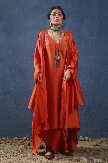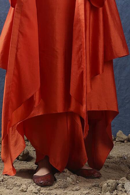 Shop_Kritika Murarka_Orange Silk Draped Pant_at_Aza_Fashions
