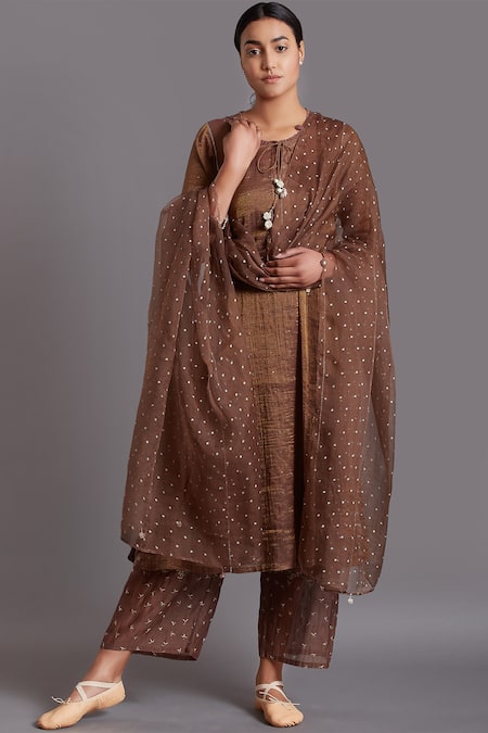 Shades Of India_Brown Silk Dupatta_Online_at_Aza_Fashions