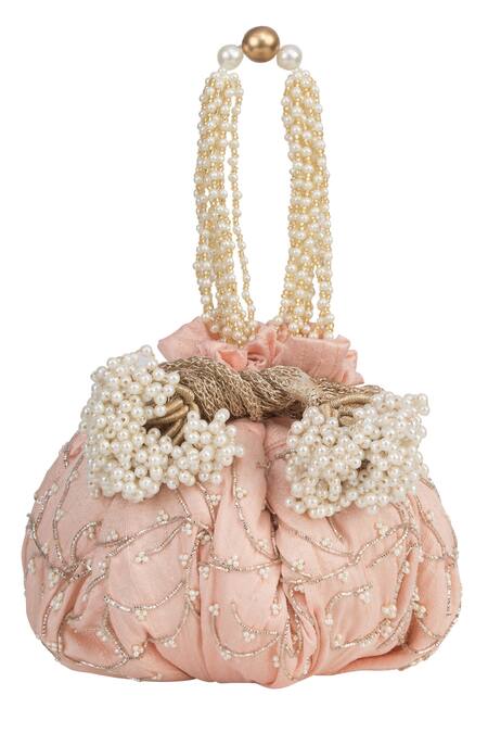 Buy_Ozel_Pink Beads Silk Embellished Potli Bag_at_Aza_Fashions