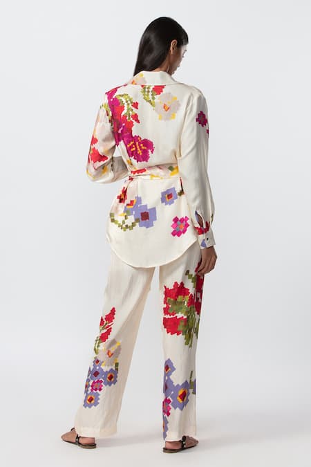 Buy_Saaksha & Kinni_Ivory Silk Embroidery Collared Floral Print Jacket _at_Aza_Fashions