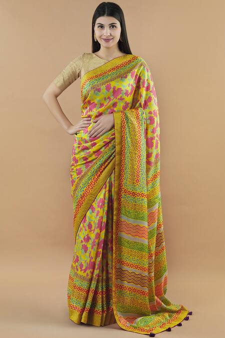 Yellow Silk Printed Saree