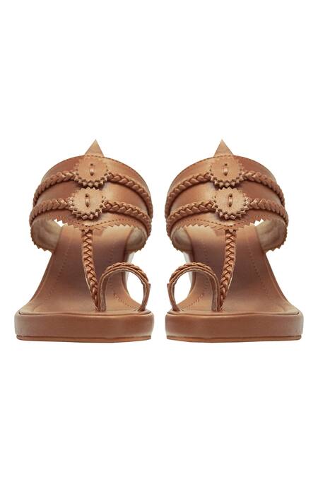The all-purpose brown ensures that this pair of braided cut work Kolhapuri wedges will complement a range of ensembles, letting you dance away with ease.