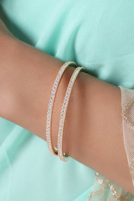 Gold Plated Cubic Zirconia Diamond Elegant Studded Bangle - Set Of 2