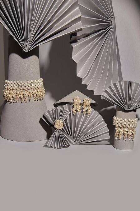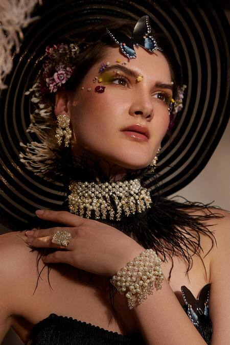 Handmade, Adjustable ring, Dimensions in inches (L X B): 17.7 x 1, Weight (in gms): 200, Closure: Earrings: Pushback clasp, Note: Head accessory worn by the model is not for sale