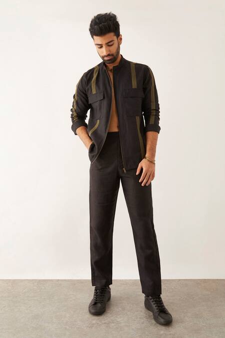 Son Of A Noble Snob_Black Linen Hama Shacket And Trouser Set_Online_at_Aza_Fashions