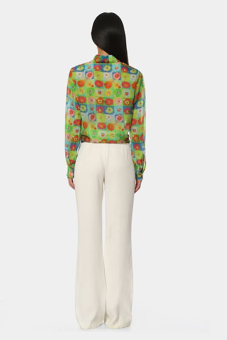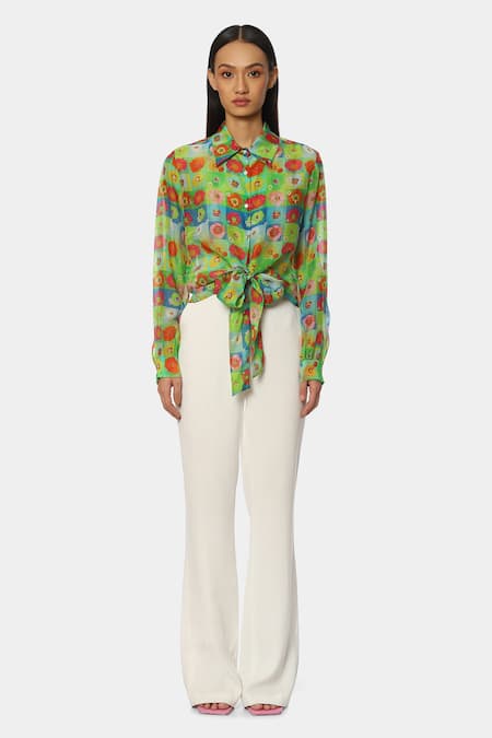 Buy_Satya Paul_Green Organza Floral Shirt Collar Spring Break Pattern_Online_at_Aza_Fashions