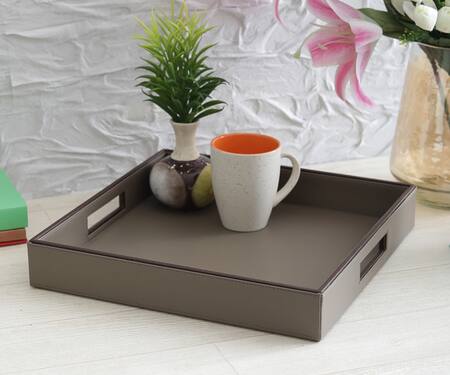 The clean lines of this dual finish serving tray make it an elegant addition for any living space. It's beige & brown finish makes it an eclectic mix of design & usability.