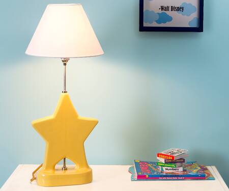 This yellow star lamp is made of ceramic and comes with a 2 meter long wire. It can be used perfectly as a night lamp and even be placed on your little stars study table. Team the yellow star lamp with a rocket pin board and star knobs and give a magical look to your space.
