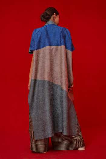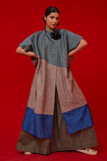 Colorblock panels, Statement sleeves, Relaxed long silhouette