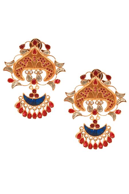 Gold Plated Stone, Metal Dangler Earrings