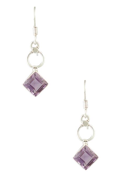 Silver toned danglers with amethyst stone studded & cutout detailing.