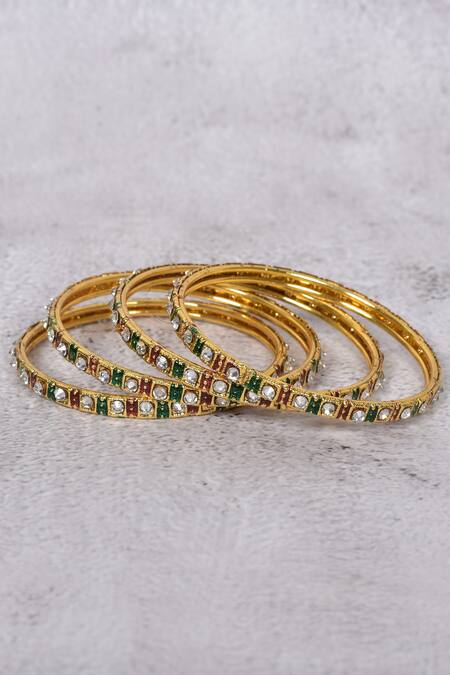 Gold Plated Stones Embellished Bangles - Set Of 4