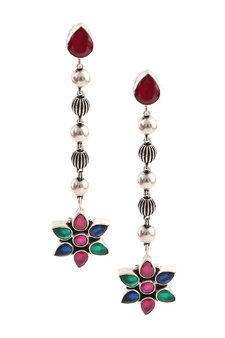 Silver toned handcrafted dangler earrings featuring multicolor stone embellishments