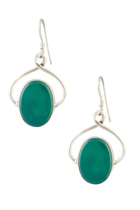 Silver toned earrings with green onyx stone embellished & carved detailing.