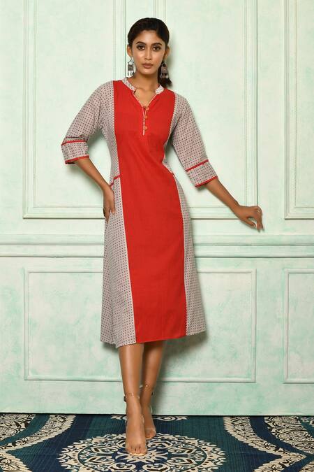 Buy_Aryavir Malhotra_Grey Cotton Collared Neck And Polka Dotted Long Tunic_Online_at_Aza_Fashions