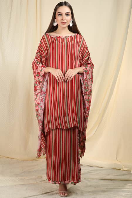 Buy_Nikasha_Maroon Georgette Round Striped Kaftan Skirt Set _Online_at_Aza_Fashions