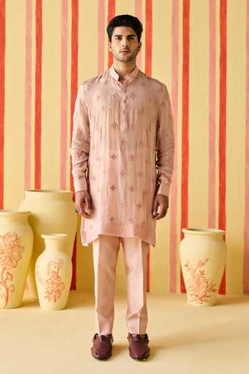 Pink Organza, Chanderi, Tissue Raghav Floral Embroidered Kurta Set