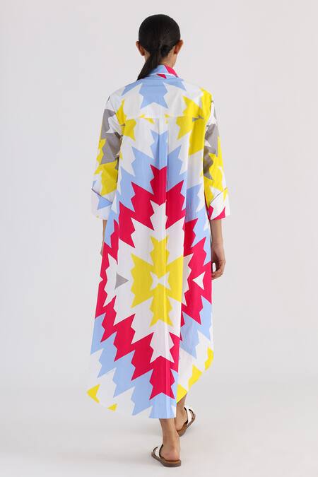White Cotton Shawl Neck The Eunoia Summer Printed Dress