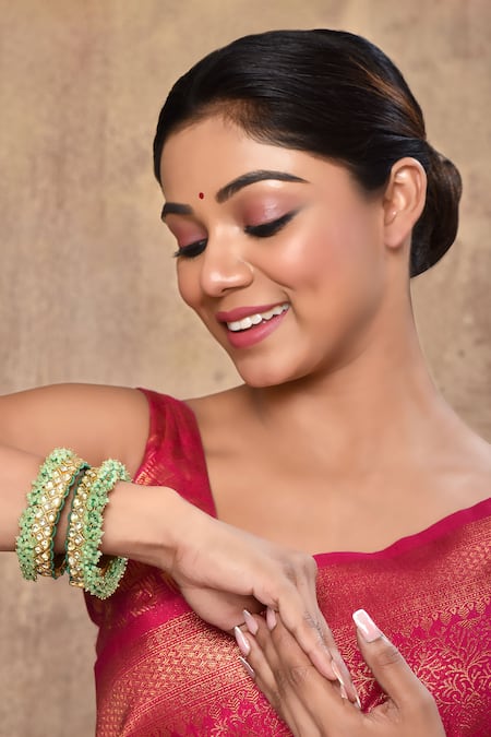 Buy_Studio6 Jewels_Green Beads, Diamonds Kundan Embellished Bangles - Set Of 2 _at_Aza_Fashions