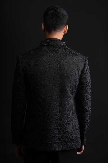Black Silk Stones, Cut Work Embellished Bandhgala Set
