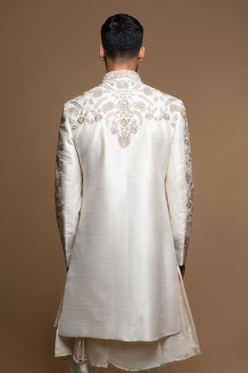 Off White Silk Floral Embroidered Sherwani With Pant
