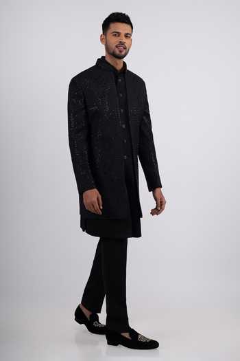 Embroidered sequin work, Mandarin collar, Comes as a set