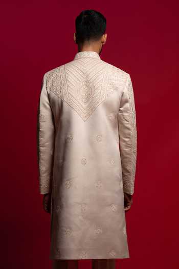 Beige Silk Tonal Thread Embroidered Sherwani Set