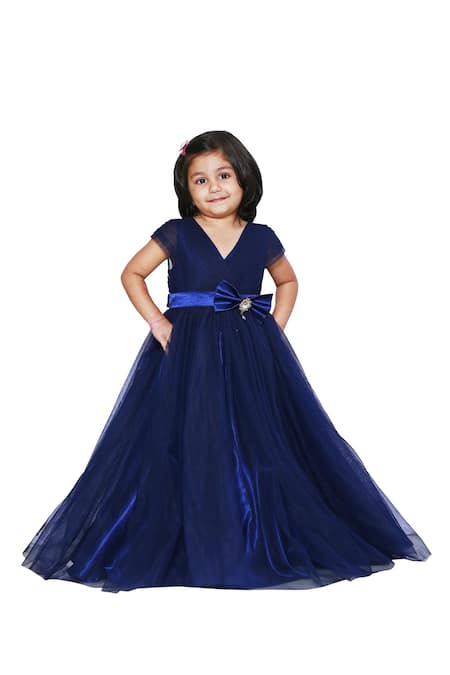 Blue Taffeta Bows Layered Gown