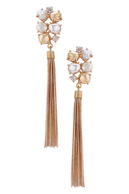 Buy_Atelier Mon_Gold Plated Crystals Tassel Earrings_at_Aza_Fashions