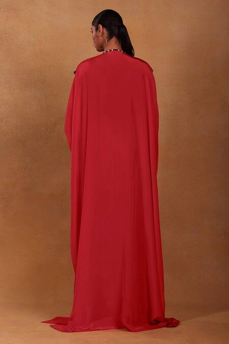 Red Tea Party Draped Skirt Set With Cape
