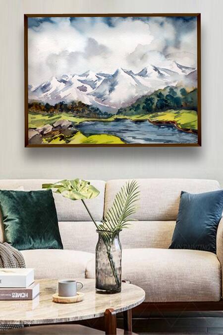 Rectangular shaped, Mountains & river scenery motifs, Size L x B x W (inch): 40 x 30 x 2, Weight (kgs): 3, Note: Only the painting is being sold