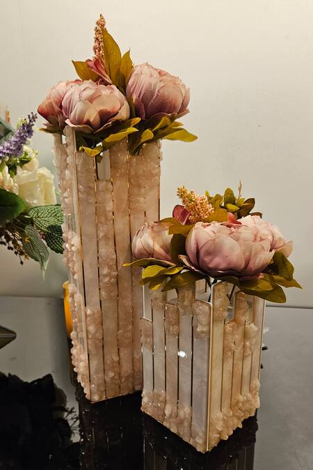Buy_The Bling Edit_Pink Acrylic, Polymers Stone High Low Studded Long Vase - Single Pc_at_Aza_Fashions
