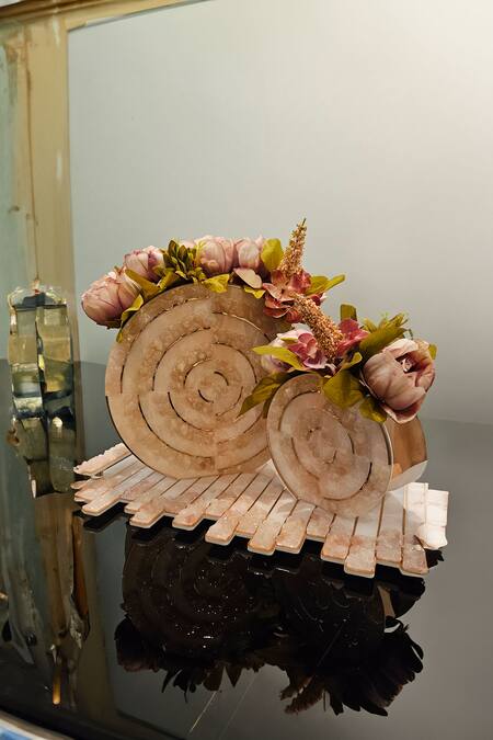 Buy_The Bling Edit_Pink Acrylic, Polymers Stone High Low Studded Vase_at_Aza_Fashions