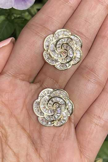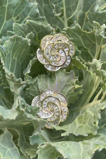 Embellished with crystals in a spiral design, 18k white gold plating, Flower-shaped design with intricate detailing