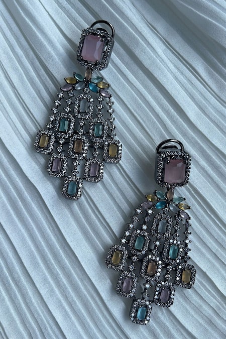 Small rectangular drops from flower motifs, Moonstones in soft shades of pink, blue, and yellow