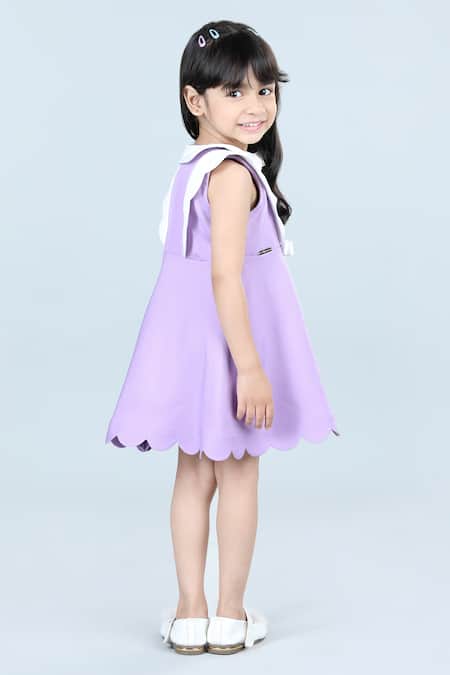 Lilac solid dress featuring a Peter Pan collar and placed scalloped patterns