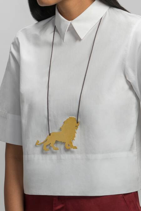 Gold-tone long necklace with Lion shaped pendant & thread string.