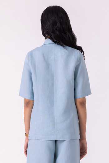 Blue Linen Notched Neck Jo Jacket