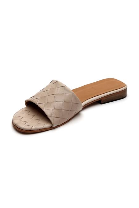 Beige Textured Kate Woven Strap Leather Sliders