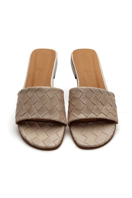 Beige sliders with basket weave textured straps.