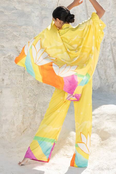 Yellow Chiffon, Satin Flower Print Shoreline Cape
