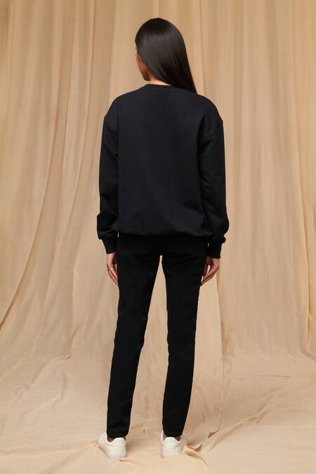 Black Knit Printed Toffee Motif Round Sweatshirt
