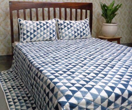Blue 100% Cotton Hand Block Print Triangle Bedcover Set