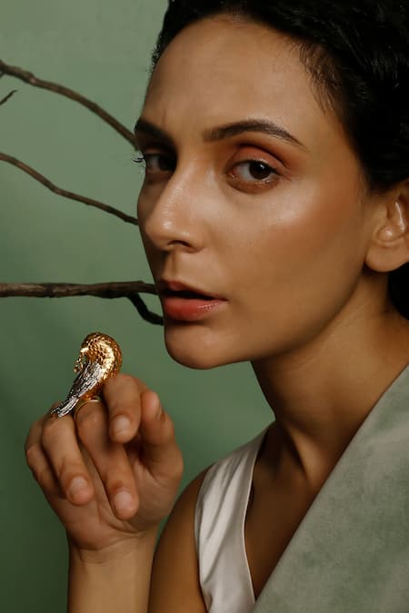 Trupti Mohta Gold Plated 3d Bird Ornamented Ring
