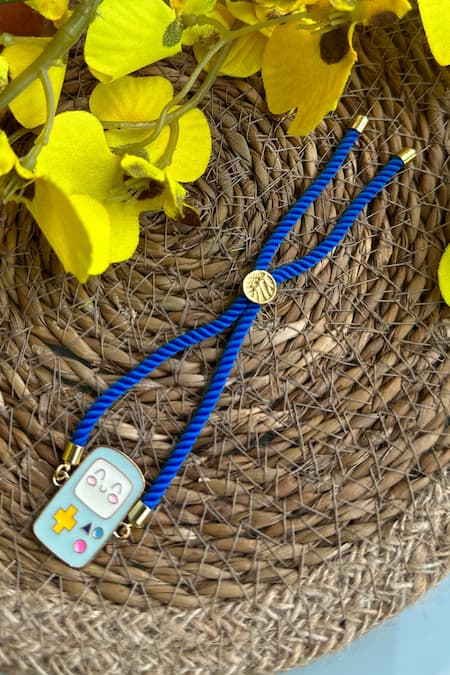 Shop_Ttyohar_Blue Enamel Work Cell Phone Rakhi_at_Aza_Fashions