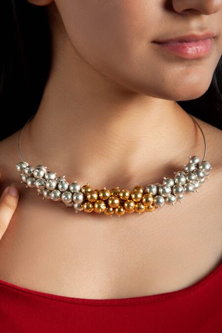 Buy_Neeta Boochra_Gold Plated Beads Two Tone Hasli Necklace_at_Aza_Fashions