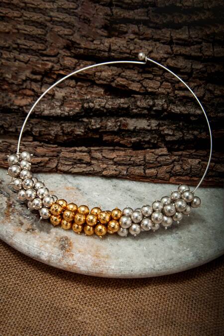 Buy_Neeta Boochra_Gold Plated Beads Two Tone Hasli Necklace_Online_at_Aza_Fashions
