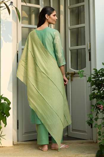 Verdant Floral Kurta Set features delicate thread embroidered blooms placed across the kurta and sleeves, adding gentle texture and detail. Paired with matching pants and a coordinated dupatta, the ensemble comes together in a light and effortless silhouette.